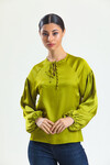 KADIN Yakası Bağcıklı Kolları Lastikli Saten Bluz