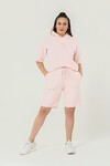 Taş İşlemeli Kapuşonlu Büyük Beden Şort Takım